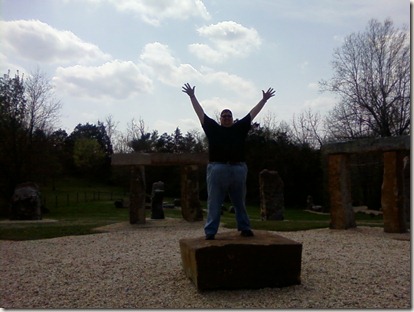 It is known by some as “Clonehenge” which sounds kinda cute to me. Anyways, I’ll probably be ancient myself (or more likely dead) before I can ever ride my bike up to the REAL Stonehenge and touch the mysterious monoliths, so when I heard about this place, I did a little research and discovered it’s just over yonder (like everything in Kentucky). Really it’s a little over an hour away—one hour and eighteen minutes with the old trusty Google maps (or one hour and fifty minutes if you like to take the scenic route (along state roads and backroads). Also, as an added bonus, I hear that “Big Bubba Bucks Belly Bustin BBQ Bliss” has some really good grub according to some folks…